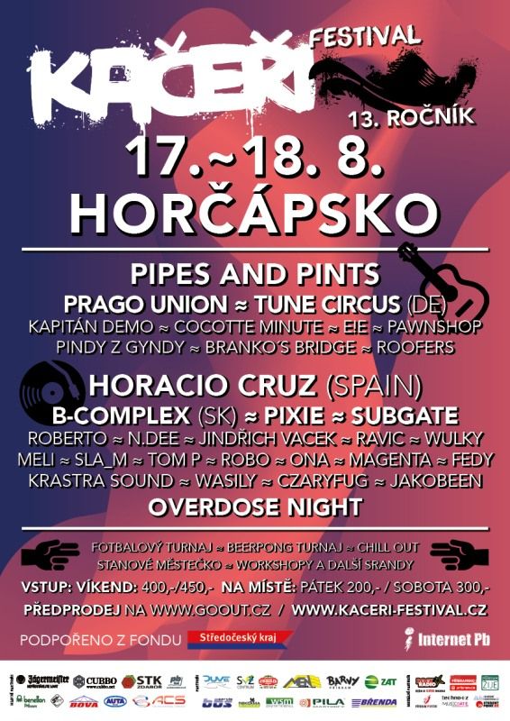 Léto se přiblížilo raketovým tempem a s ním i tradiční festival Kačeři. Pro třináctý ročník byl zvolen magický víkend 17. a 18. srpna 2018, místo zůstává stejné, Horčápsko u Březnice.