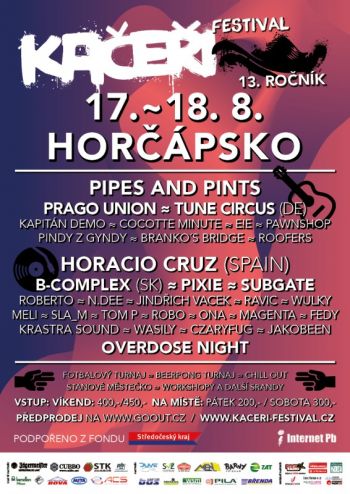 Nejlevnější celofestivalové vstupenky zakoupíte na internetu přes www.goout.cz. Více informací naleznete na www.kaceri-festival.cz, na Facebooku nebo Instagramu.